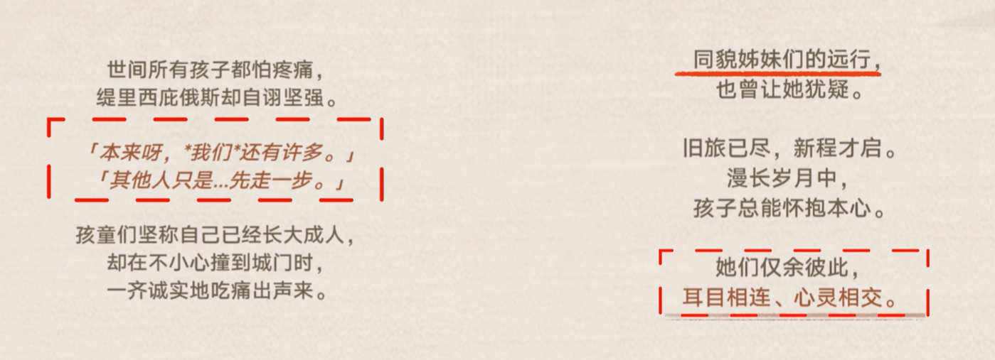 为什么她们的称呼这么奇怪?如果玩家解锁了《如我所书》中缇宝的相关情报,就能知道,过去缇宝、缇安、缇宁的姐妹有很多,并且她们耳目相连、心灵相交。只是因为黑潮来临,才只剩下了缇宝、缇安、缇宁这三小只。